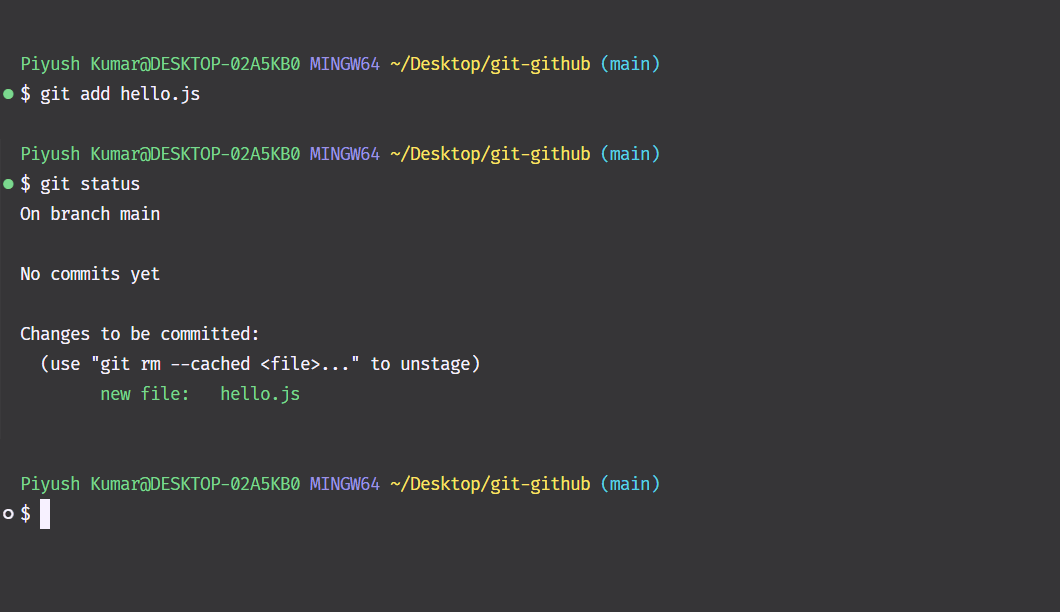 You can see that Git now shows the files under “Changes to be committed”, indicating they are successfully staged.